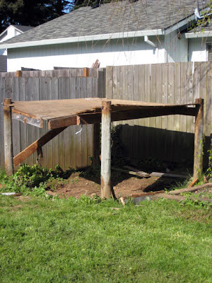 So dad has taken down almost the entire old treehouse - even tho it looked really cool, it had an old wasp nest inside and the wasps were buzzing around looking for their old home... so we broke it up and hauled it away. Well, not actually "we". No hauling for me, somebody has to do all of the REALLY hard work - the supervision.