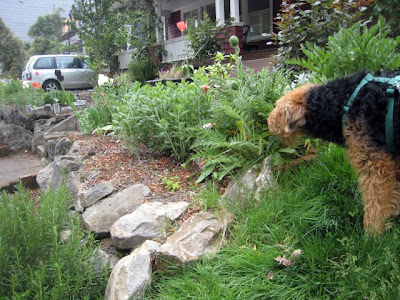 This is as close as I can get to "pointer" mode - I stop, look at the flower, and bark. Golden moment on film!